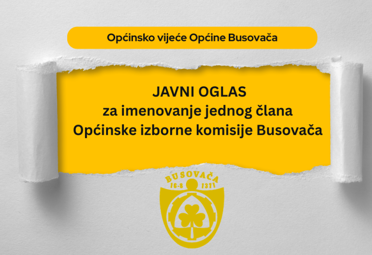 Općina Busovača raspisala je javni oglas za imenovanje jednog člana Općinske izborne komisije na mandat od sedam godina. Traži se kandidat sa prebivalištem u Busovači koji ima završen fakultet (VSS ili minimalno 180 ECTS bodova) i prethodno iskustvo u provođenju izbora, bilo kroz rad u biračkim odborima, izbornim komisijama ili centrima za birački spisak. Važno je napomenuti da kandidati ne smiju biti stranački funkcioneri niti nosioci izabranih mandata. Postupak izbora uključuje pismeno testiranje iz oblasti izbornog zakonodavstva, a pitanja za pripremu su javno dostupna na stranici Centralne izborne komisije BiH. Prijave sa potrebnom dokumentacijom i dokazima o iskustvu dostavljaju se u zatvorenoj koverti na adresu Općine Busovača u roku od 8 dana od objave oglasa u “Oslobođenju”. Detaljne informacije i potrebni obrasci mogu se pronaći na službenoj web stranici ili oglasnoj ploči Općine. PRIJAVA NA JAVNI OGLAS IZJAVA IZJAVA O NACIONALNOM IZJAŠNJENJU